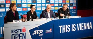 Ehe die beiden Finalspiele der Erste Bank Open 500 im Einzel und Doppel stiegenm, gab´s die schon tradtionelle Abschluss-Pressekonferenz in der Wiener Stadthalle. Da ja der Sonntag auch Nationalfeiertag ist, der die Politiker stresst, musste man auf Wiens masssigen Sportstadtrat Peter Hacker etwas warten, ehe das verbale Schulterklopfen mit ihm, der Erste-Bank-Vorstandsvorsitzenden Holzinger-Burgstaller vom Hauptsponsor und Turnierdirektor Herwig Straka, der zu Recht ein positives Resümee des 500er-Turnieres zog. „Die Top 4 im Semifinale und Nr. 2 der Welt gegen Nr. 3 im Finale, das haben nicht einal die meisten 1000er. Und 5 aus den Top 10 ist auch schwer zu toppen!“ Und schließt aus, dass auch Alcaraz zusagen könnte, wenn Sinnerkommt, „weil die sich das aufheben für Masters und Grand Slam.“ Im Fokus steht Brasil-Teenager Fonseca, der heute im Basel-Finale spielt…