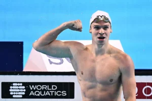 SCHWIMMEN. Weltmeisterschaft in Singapur. Während offenbar der stickigen Luft wegen viele (nicht nur) Siegerzeiten hinten den Erwartungen geblieben waren, wurde am vierten Tag endlich der erste Weltrekord im  asiatischen Stadtstaat gefeiert. Verantwortlich dafür, dass nach 14 Jahren der am längsten bestandene Weltrekord des US-Amerikaners Ryan Lochte über 200m Lagen nicht nur fiel, sondern um 1,31 Sekunden pulverisiert wurde, war der französische Mehrfacholympiasieger vom Paris, Leon Marchand, der seit zwei Jahren vom früheren Phelps-Coach Bob Bowman (jetzt nicht mehr in Baltimore, sondern Arizona) trainiert und immer besser wird. Marchand fixierte den ersten Weltrekord der Singapur-WM schon im Semifinale mit 1:52,69 Minuten und einem Vorsprung von mehr als drei  Sekunden auf den US-Amerikaner Casas. Möglich, dass er morgen noch einen Tick schneller schwimmt….