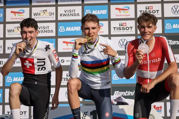 RADSPORT. Weltmeisterschaft in Ruanda, Kigali: U23-Männer: Marco Schrattl, 20, der schon bei der Tour of the Alpss aufgezeigt hatte, wandfelt auf den Spuren von Felix Gall. Der Tiroler aus Münster bei Kramsach holte zwar nicht das Regenbogentrikot wie der Osttiroler, aber immerhin mit 1:13 Minuten Rückstand die Bronzemedaille. Damit bestätigte Schrattl, der auch bei der Tour of Austria seinen Jungmann gestellt hatte, sein Talent und Potential. Der italienische Juniorenweltmeister des Vorjahres, Lorenzo Finn, schlüpfte als Sieger vor dem Schweizer Huber (+31) ins nächste Regenbogentrikot. Schrettl hatte im Zielanstieg seine Begleiter, den Spanier Alvarez und einen Polen, abgeschüttelt und den knappen Vorsprung als Solist ins Ziel gebracht. Am morgigen Samstag ist cfür Östgerreich nach Absagen von Olympiasiegerin Kiesenhofer und den Schweinberger-Sisters nur Carina Schrempf beim Straßenrennen am Start.