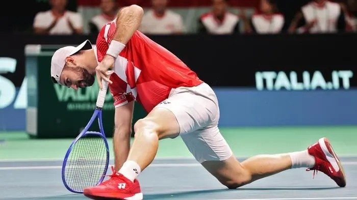 TENNIS. Daviscup-Viertelfinale, Bologna: Nichts wurde aus der nicht nur heimlich, sondern offen spekulierten Sensation des ÖTV -Teams gegen den mit der zweiten Garnitur (ohne Sinner, Musetti) angetreten Titelverteidiger und Gastgeber Italien,m der in diesem Daviscup-Mickey-Mouse-Format schon nach den edsten beiden Einzelspielen uneinholbar mit 2:0 führte, damit ins Semifinale gegen Belgien (Überraschungssieger gegen Frankreich) einzog.
