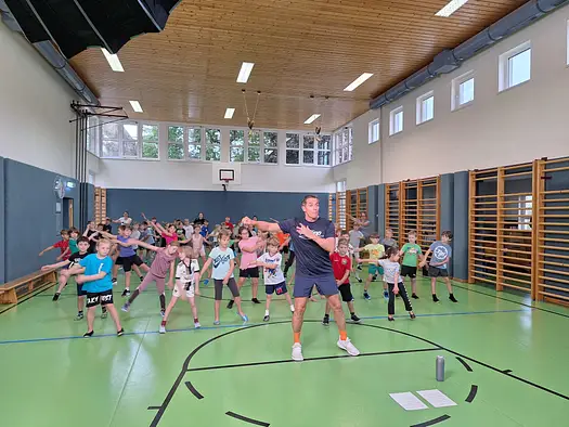 In der Tat ein Schulbeispiel, von dem ich hoffe, dass es auf mehr als niur einen Tag die Woche ausgedehnt wird, damit die Enkek von heute die Väter und Mütter auch sportlicher Erfolge von morgen und übermorgen werden (können). Jedenfalls ist es ganz sicher sinnvoller, der heutigen Jugend vor Ort gleichsam den Marsch zu blasen statt im Staatsfunk – übrigens nur an Arbeitstagen von Montag bis Freitag – um 9,10 in der Früh, also uu einert Zeit,. wenn die Mehrheit der Schulkinder, Studenten und Werktätigen lernt, büffelt oder was immer arbeitet – mit wenigen echten, aber mehr oder weniger Pseudo-Stars zum Mitmachen der Übungen zu animieren.