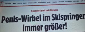 Eine andere Bild-Seite setzte die inzwischen auch schon geschrumpfte Millionen-Leserschaft über die Trümpfe – oder soll man sagen Sümpfe – der erfolgreicheren Skispringer insofern ins rechte Bild, als sie die seit Willingen bekannte Geschichte über „Zipfel-Hauben“ aufwärmte. Zipfelhauben, wie wo was und warum? Es geht bei dieser These des Schwindels nicht ums Material, sondern den Mann oder besser: das männliche Glied, das in welcher Form oder Richtung auch immer mit einem Klebeband so fest an den Körper gepresst wird, dass es angeblich zu mehr Aerodynamik oder Auftrieb verhelfen soll. Interessant.