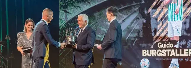 So weit, so (un) gut bus schlecht und auch objektiv falsch gemessen an konstanten Leistungen anderer,  nicht nur, aber vor allem eines Konrad Laimer beim FC Bayern, wurde Goleador Krankl als Laudator gewählt oder besser gesagt: m issbraucht, um einen seiner Nachfolger im Kleinstformat, nämlich Guido Burgstaller, einen Ehrenpreis für Verdienste um den österreichischen Fußball zu ehren. Abgesehen davon, dass der Kärntner nie eine Rapid-Galionsfigur war, ehe man ihn als Heimkehrer aus dem Ausland medial dazu machte, und abgesehen dcavon, dass er die meiste Fußballerzeit als Legionär bei Schalke und St. Pauli nicht in der ersten, sondern zweiten deutschen Liga verbracnte, hat er sich ja weder bei der medial ausgeschlachteten Schlägerei um 6 Uhr frÜh (!) mit fatalen Folgen vor einer In-Disco noch beim Prozess gegen einen reumütigen, aber nicht fußballaffinen Studenten keineswegs als Mann von Größe erwiesen. Just so einer kriegt wider alle Tatsachen eine Auszeichnung als Vorbild! Ufassbar. Und unfassbar ungkaubwÜrdig!“ uch unsere kleine Fußballwelt wird, getreu dem politischen Vorbild-Vorsatz, dass wir uns keinen rausschießen lassen, auf den Kopf gestellt. Und alles kritiklos mit medialem Jubel, abngesehen davon, dass der ORF beleidigt ist, weil ihm der hier groß-, in Mailand klein gehandelte Arnie einen Korb gab…